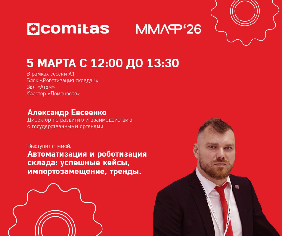 В деловой программе Московского международного логистического форума COMITAS будут представлять два спикера. 5 марта в рамках сессии А1, «блок Роботизация склада-I», зал «Атом» с 12:00 до 13:30 выступит директор по развитию и взаимодействию с государственными органами COMITAS Александр Евсеенко с темой «Автоматизация и роботизация склада: успешные кейсы, импортозамещение, тренды». Александр подробно расскажет о реализованных объектах COMITAS по автоматизации и роботизации. Коснется такой актуальной темы как импортозамещение, рассказав, что производит COMITAS на своем производстве. НИОКР разработки логистического оборудования COMITAS осуществляет при поддержке Минпромторга, поэтому Александр поделится информацией о государственной поддержке отечественных производителей средств автоматизации и роботизации. Завершит свое выступление спикер темой высотных автоматизированных самонесущих складов, которые сегодня становятся необходимы практически любому бизнесу для обеспечения конкурентных преимуществ. В этот же день в зале «Молекула» с 12:00 до 13:30 на сессии М1, блок «От стратегии к тактике» будет присутствовать директор департамента продаж автоматизированных решений COMITAS Дмитрий Геллер. Эксперт примет участие в дискуссии и сможет ответить на вопросы участников.