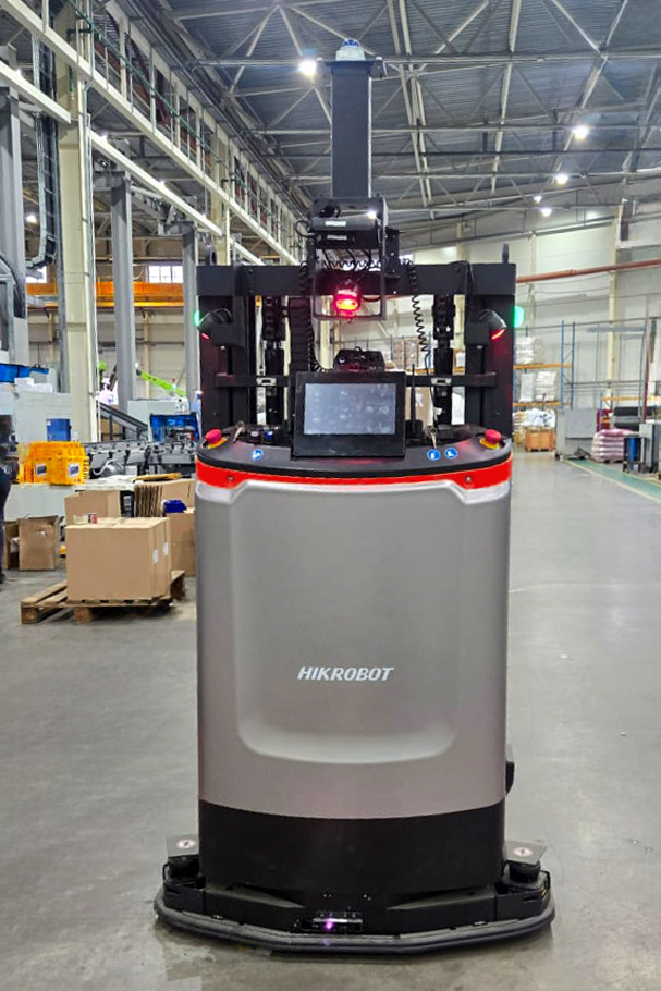 COMITAS успешно внедрил на проекте роботизированную систему внутрицеховой логистики с применением роботов FMR и AMR. Роботы перемещают по складу тяжелые грузы без необходимости физических направляющих и работают в автоматическом режиме, выполняя операции в соответствии с командами от WCS COMITAS. Точная система навигации и датчики выявления препятствий обеспечивают безопасность и безаварийность рабочего процесса. Бортовые компьютеры роботов позволяют не только точно доставлять товар в нужный слот и объезжать препятствия, но и предполагают самостоятельный выбор оптимального маршрута следования.